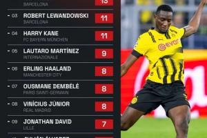 据Squawka数据统计,本赛季截止目前欧冠进球射手榜: